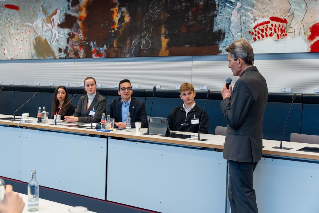 Die drei intensiven Arbeitstage im Deutschen Bundestag fanden mit der finalen Fraktionssitzung und dem Besuch von Dr. Rolf Mützenich, dem Fraktionsvorsitzenden der SPD-Bundestagsfraktion, einen Abschluss. Mützenich, der sich sehr erfreut über die Antragsarbeit der Jugendabgeordneten in turbulenten Zeiten zeigte, nahm die Anliegen der Jugendfraktion entgegen und bot ihnen zudem einen tiefgründigen Einblick in seine Arbeit.