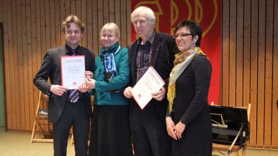 MdL Dr. Frank Mentrup, Marianne Mengel, Wolfgang Langenbein, Angelika Konstandin Dies hatte der SPD Ortsverein Pfinztal bei der diesjährigen Winterfeier. Der SPD Wöschbach konnte die Vorsitzende, Angelika Konstandin, zum 100jährigen Jubiläum gratulieren, und 13 Pfinztaler SPD-Mitglieder konnten für ihre jahrelange Treue zur SPD geehrt werden: Hans Enderle für seine 50jährige, Jürgen Aalfeld, Siegfried Fischer, Michael Gassner, Wolfgang Langenbein, Herbert Legler, Edgar Mackert, Paul Mehrer und Bernd Rothweiler für ihre 40jährige sowie Marianne Mehrer, Marianne Mengel, Soejoto Tirtohusodo und Ancilla Hoffmann für ihre 25jährige Parteimitgliedschaft.